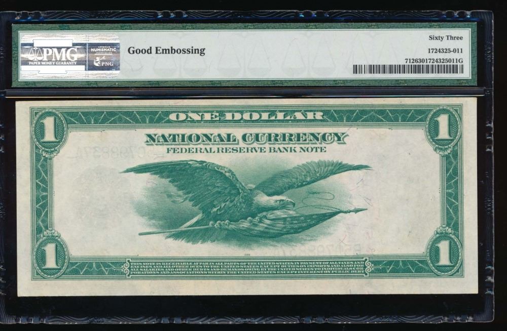 One 1918 $1 New York Federal Reserve Bank Note PMG 63.