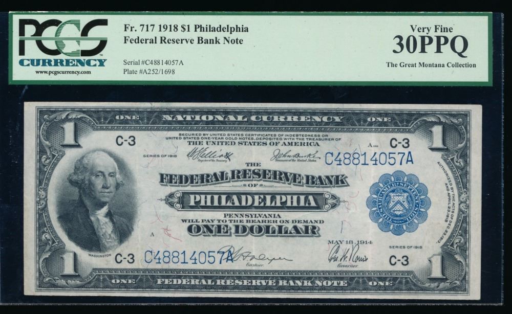 One 1918 $1 Philadelphia FRBN PCGS 30PPQ.