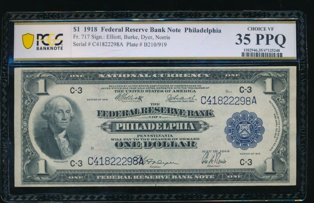 One 1918 $1 Philadelphia FRBN PCGS 35PPQ.