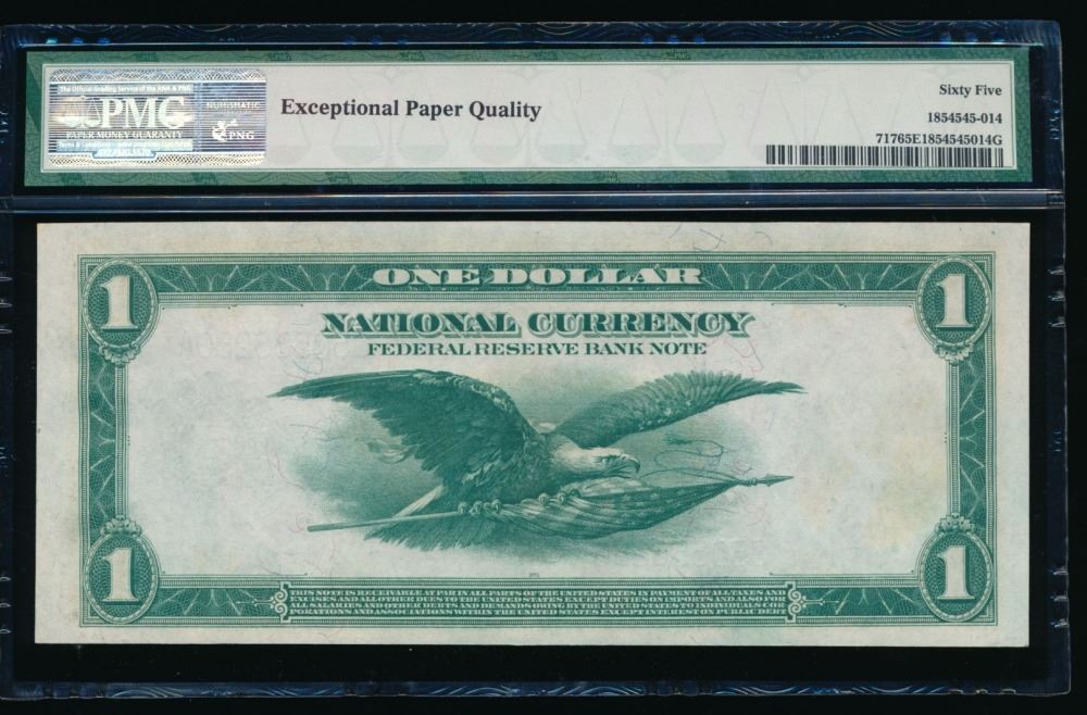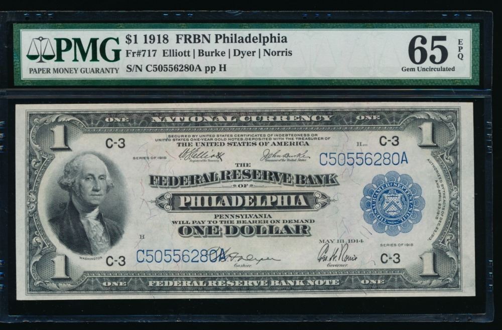 One 1918 $1 Philadelphia FRBN PMG 65EPQ.