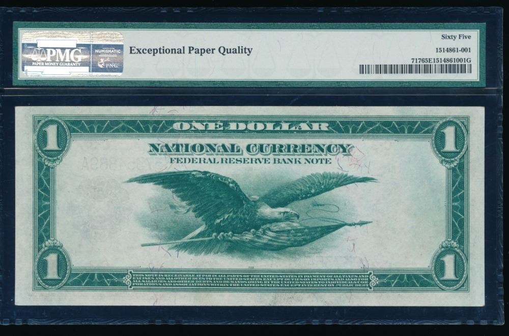 One 1918 $1 Philadelphia FRBN PMG 65EPQ.