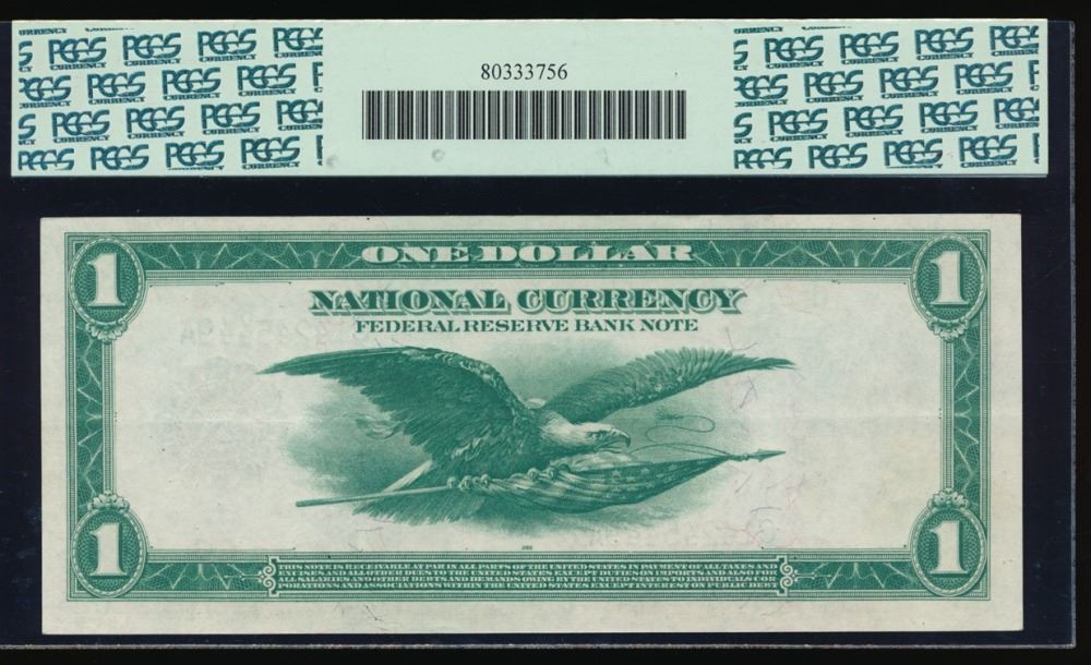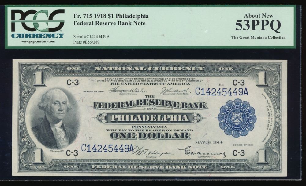 One 1918 $1 Philadelphia Federal Reserve Bank Note PCGS 53PPQ.
