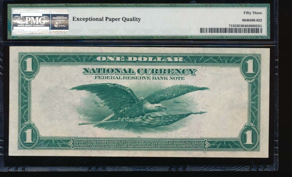 One 1918 $1 Philadelphia Federal Reserve Bank Note PMG 53EPQ.