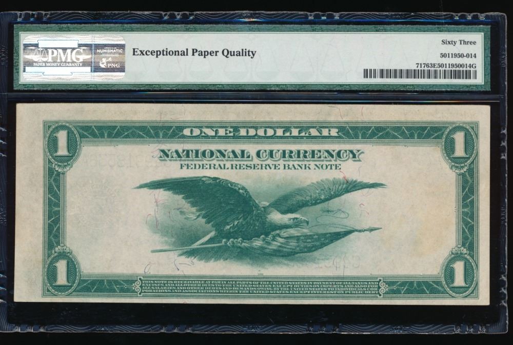 One 1918 $1 Philadelphia Federal Reserve Bank Note PMG 63EPQ.