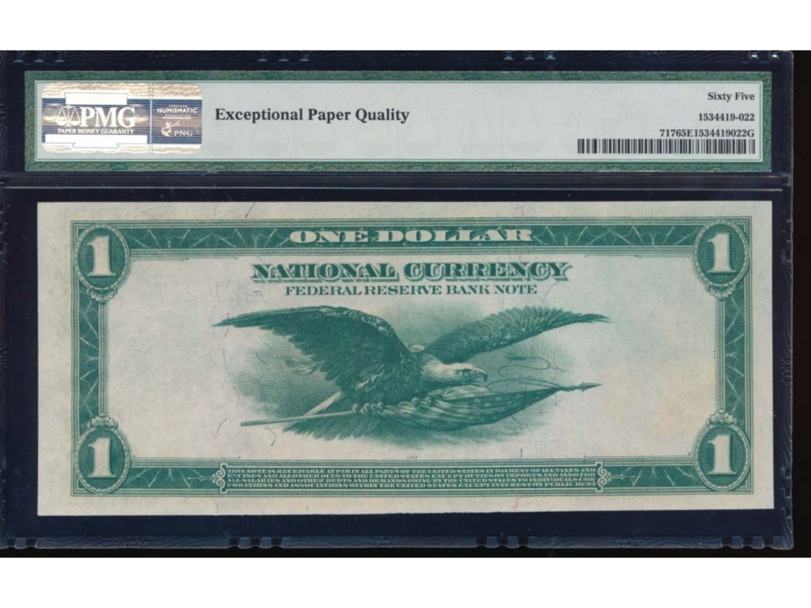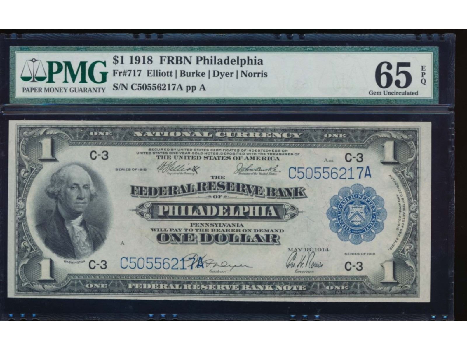 One 1918 $1 Philadelphia Federal Reserve Bank Note PMG 65EPQ.
