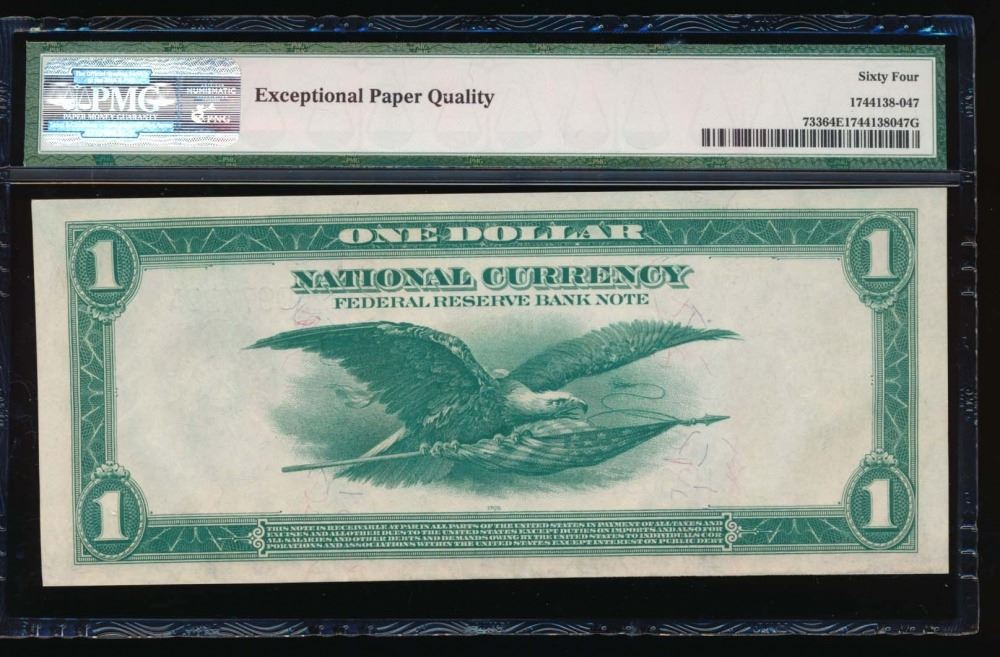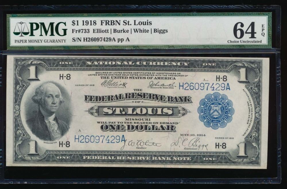 One 1918 $1 Saint Louis Federal Reserve Bank Note PMG 64EPQ.
