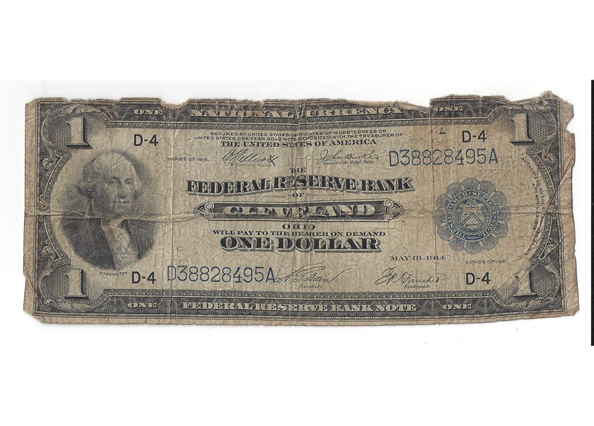 One 1918 $1 United States Federal Reserve Bank Note.
