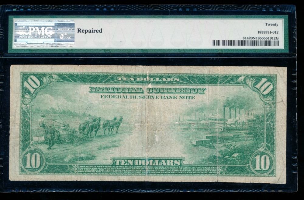 One 1918 $10 Chicago FRBN PMG 20NET.
