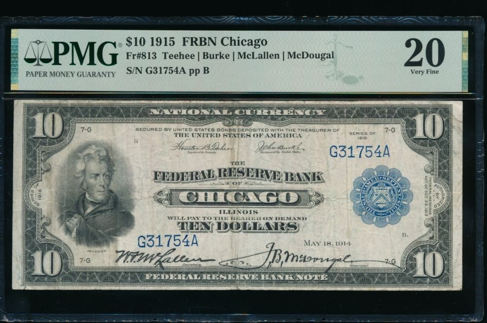 One 1918 $10 Chicago FRN PMG 20.
