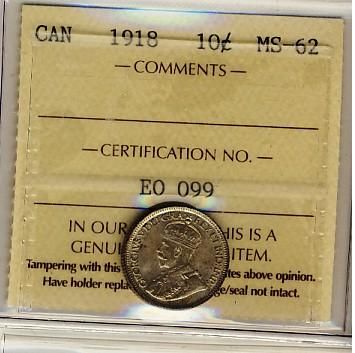 1918 10¢ ICCS MS62.
