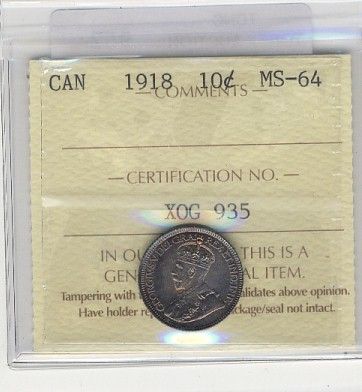 1918 10¢ ICCS MS64.