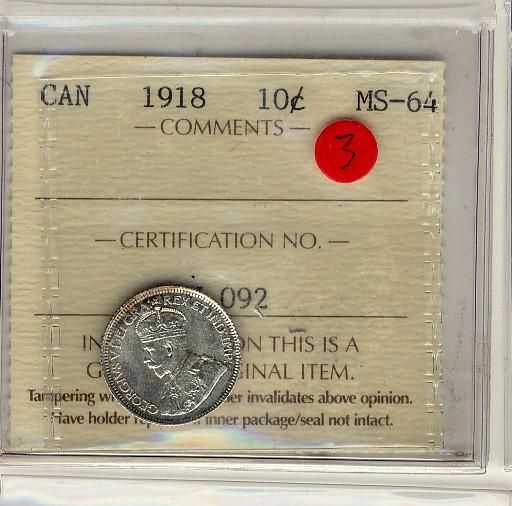 1918 10¢ ICCS MS64.