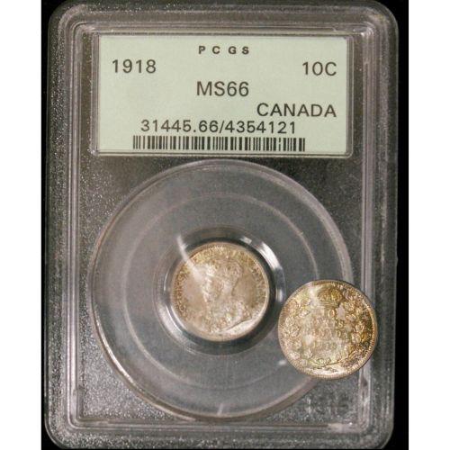 1918 10¢ PCGS MS66, A gem George V example
