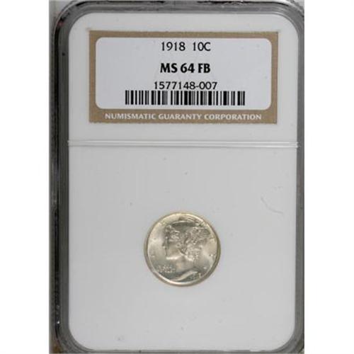 <B>1918 10C MS64 Full Bands NGC.</B></I> NGC Census: (93/69). PCGS Population (145/134). Mintage: 26,680,000. Numismedia Wsl. Price for NGC/PCGS coin in MS64: $260. (#4917)<BR><BR><B>Coin Engraver:</B> Adolph A. Weinman<BR><BR><b>Shipping:</b> Coins & Currency (<a target="_blank" href="http://www.heritageauctions.com/common/shipping.php">view shipping information</a>)