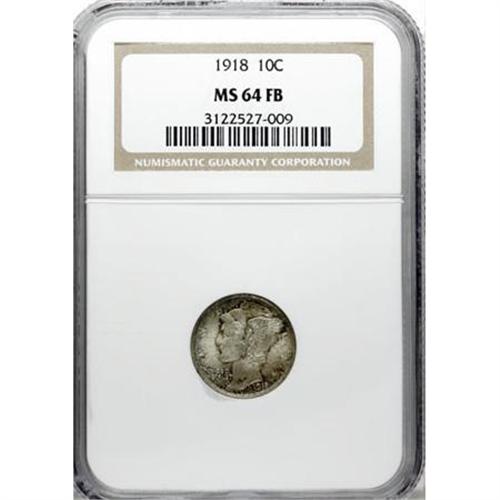 <B>1918 10C MS64 Full Bands NGC.</B></I> NGC Census: (93/67). PCGS Population (146/136). Mintage: 26,680,000. Numismedia Wsl. Price for NGC/PCGS coin in MS64: $260. (#4917)<BR><BR><B>Coin Engraver:</B> Adolph A. Weinman<BR><BR><b>Shipping:</b> Coins & Currency (<a target="_blank" href="http://www.heritageauctions.com/common/shipping.php">view shipping information</a>)