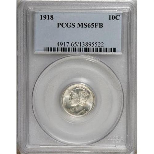 <B>1918 10C MS65 Full Bands PCGS.</B></I> A moderately challenging early P-mint in the Mercury dime series. This piece is brilliant throughout. The strike is strong on all the design elements, including the peripheries. Bright mint luster.<BR><BR><b>Shipping:</b> Coins & Currency (<a target="_blank" href="http://www.heritageauctions.com/common/shipping.php">view shipping information</a>)