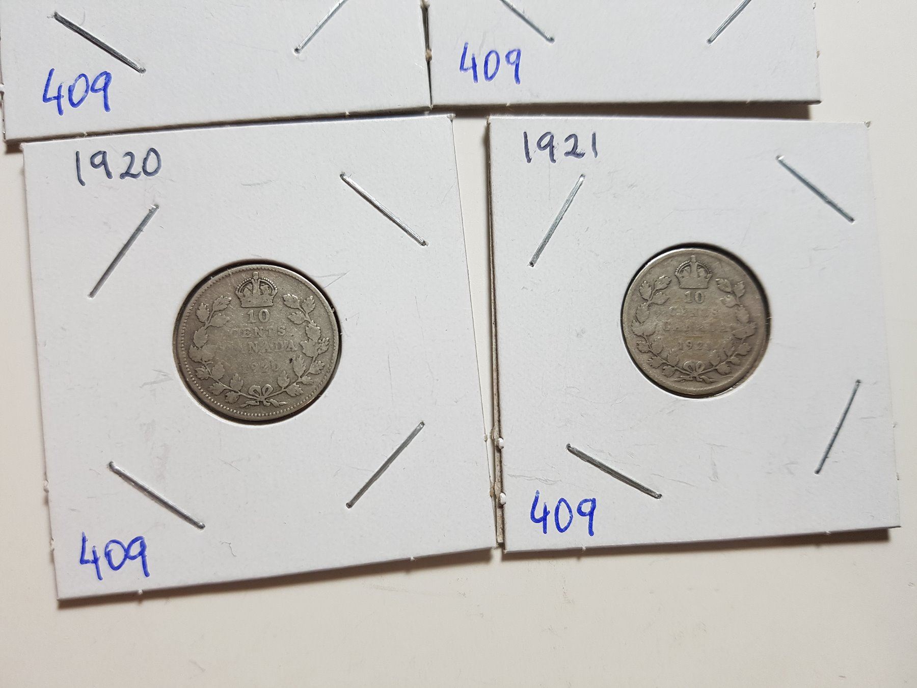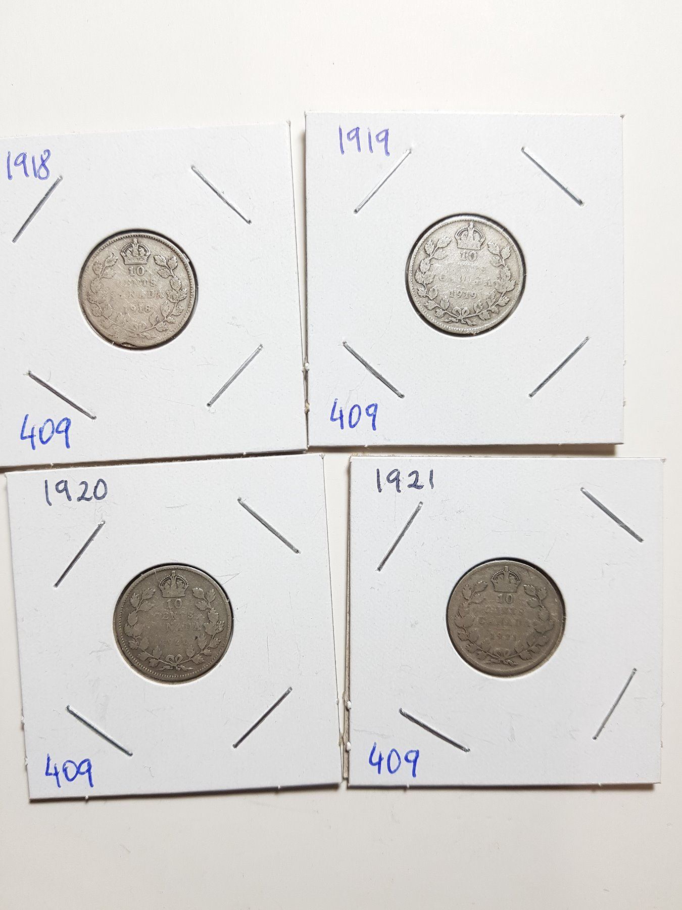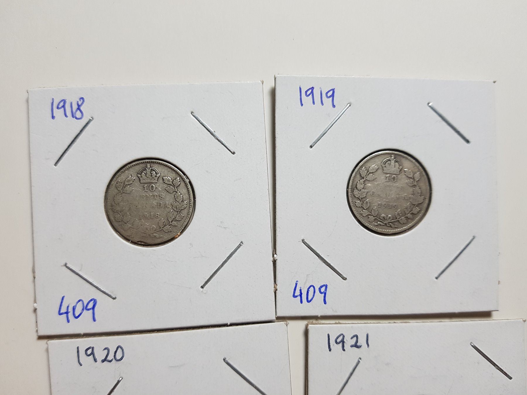 1918, 19, 20, 21 SILVER TEN CENT COINS