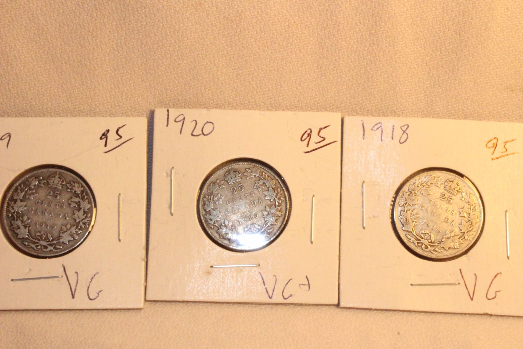 1918; 1919; 1920 Cdn. Twenty Five Cent Coins