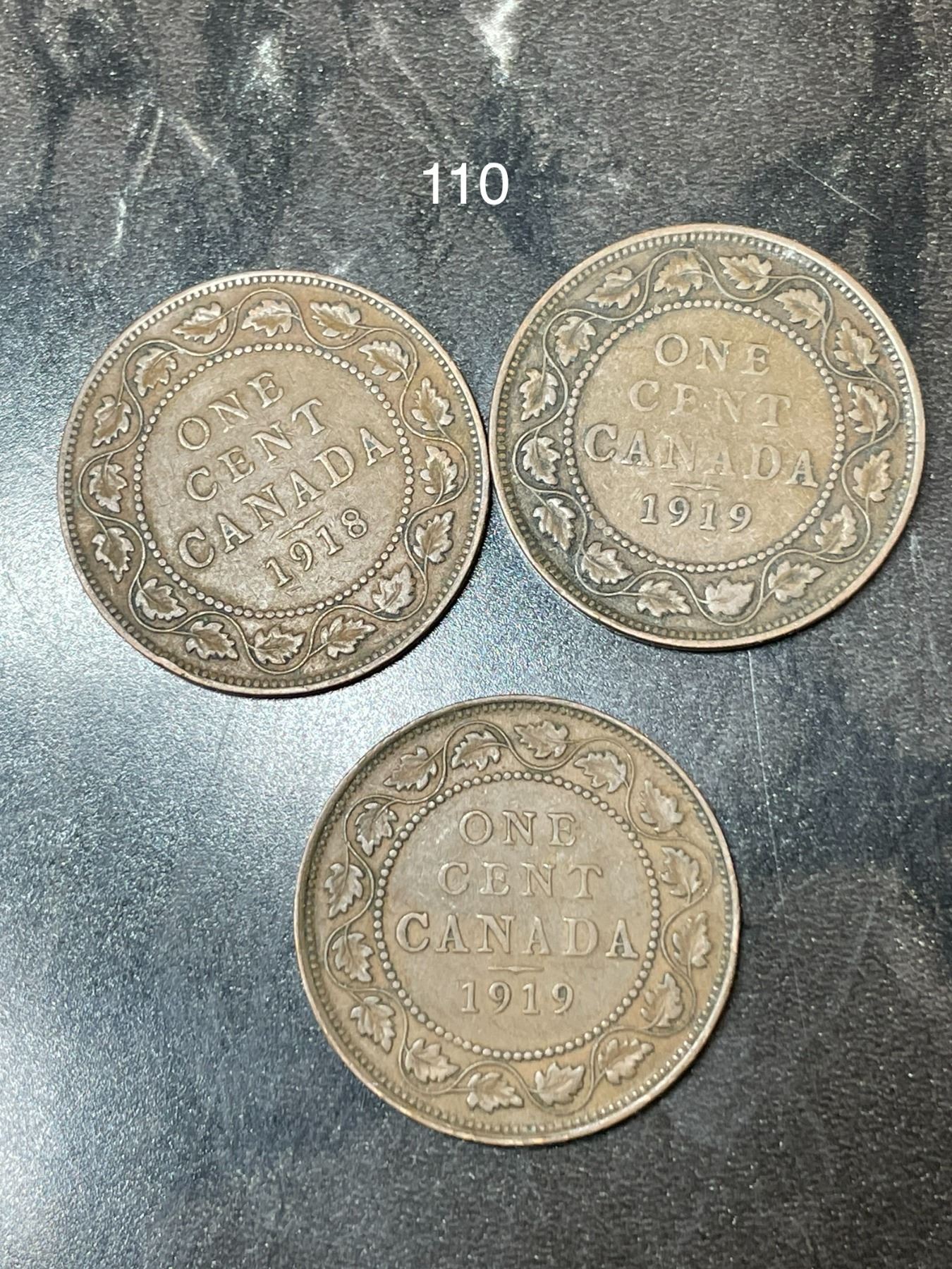 1918 & 1919 Canadian Large One Cent