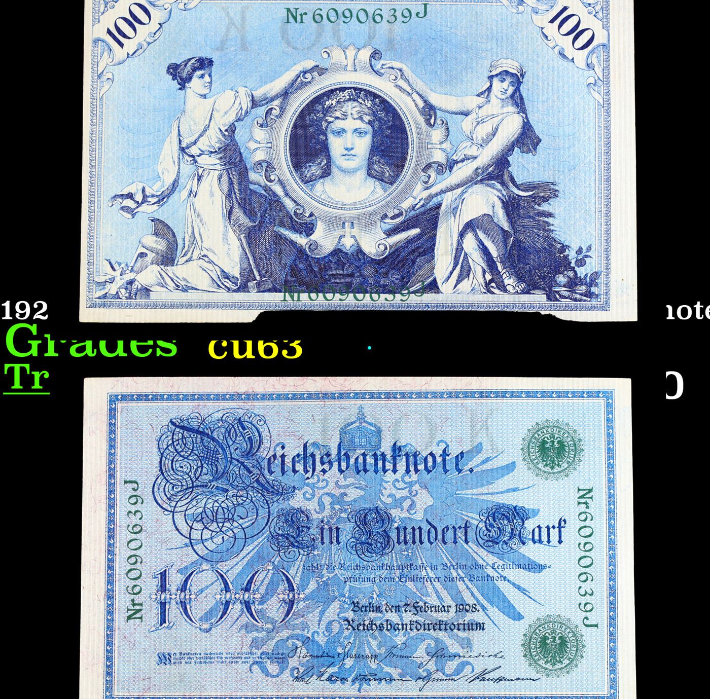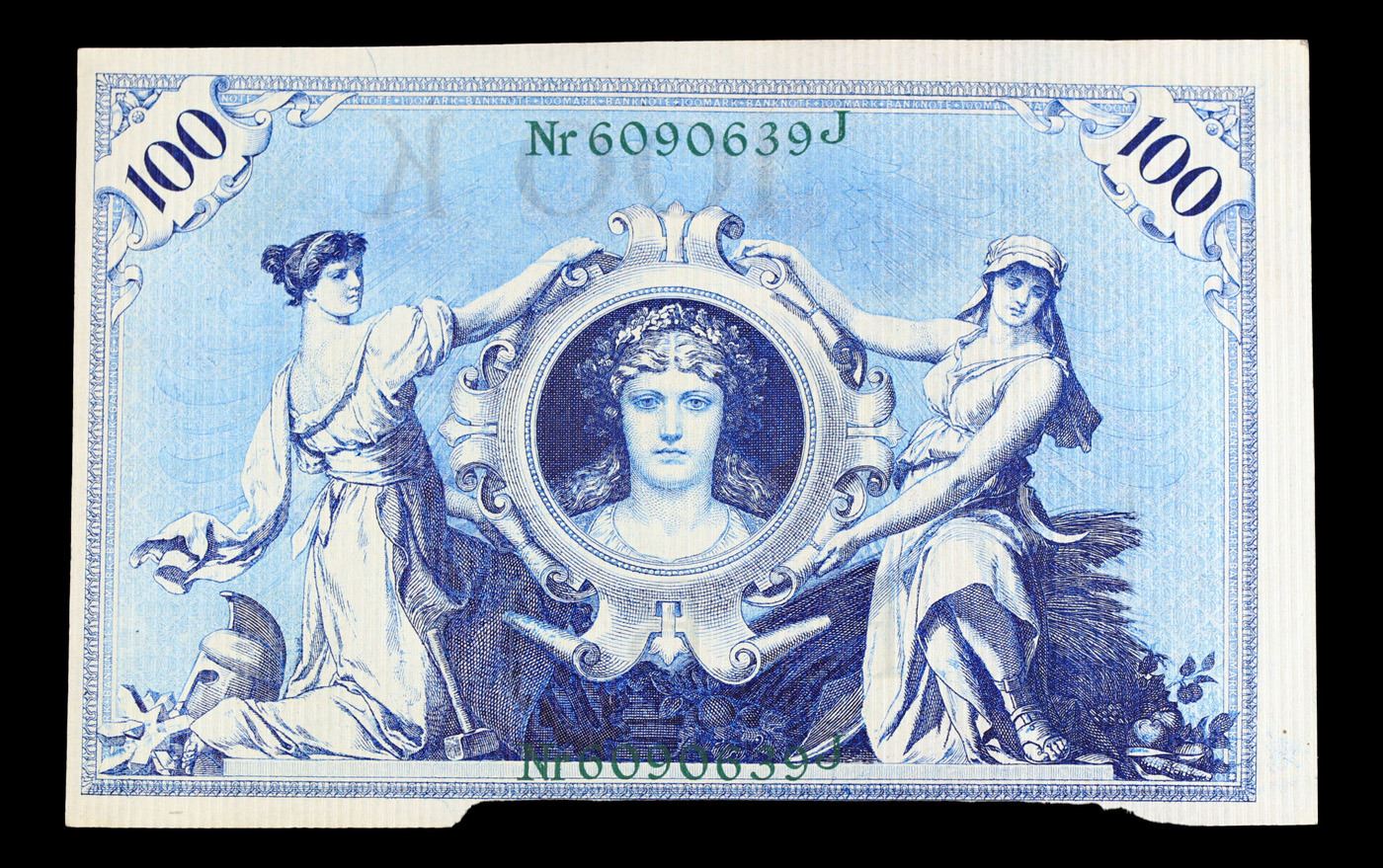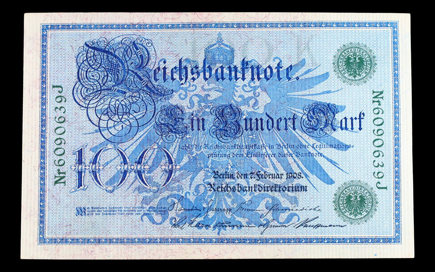 1918-1922 (1908 Issue) Germany 100 Marks Banknote P# 34 Grades Select CU. In the early 1920s, post-WWI Germany saw its economy spiraling out of control. Hyperinflation started directly after the war in 1918, but truly took over the Weimar Republic from 1921 to 1923. The value of the Mark declined incredibly rapidly. 1 USD was equal to 50 German Marks at the beginning of 1920. Toward the end of 1923, 1 USD was equal to over 4,200,000,000,000 German Marks. At times, denominations of the Mark became less valuable than the paper and labor to print it almost immediately after printing. Thus, denominations of the Mark notes became incredibly large, ending up in the tens of trillions.