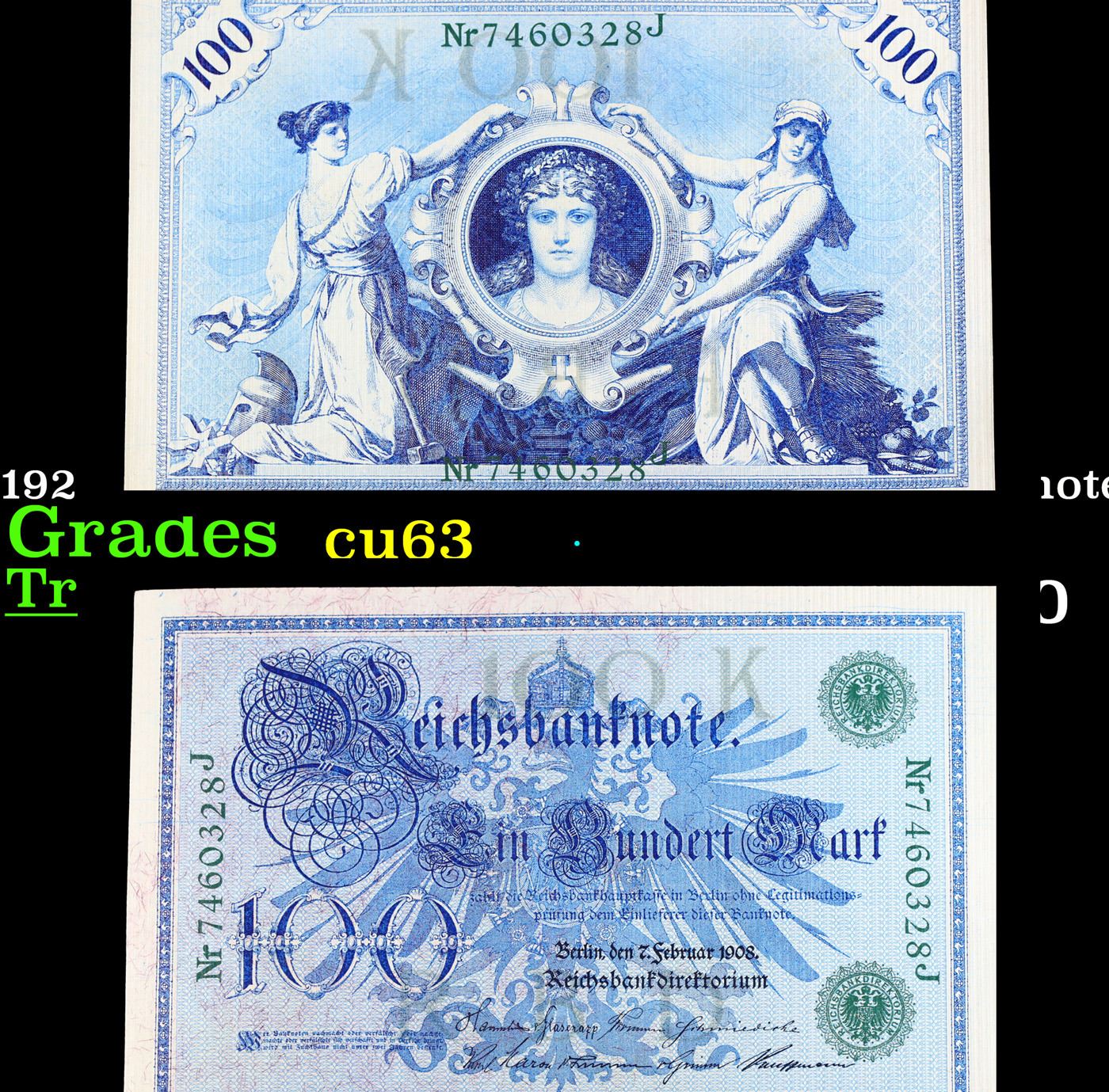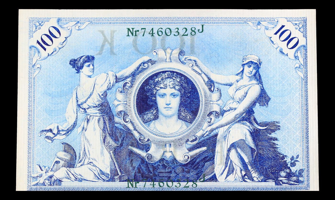 1918-1922 (1908 Issue) Germany 100 Marks Banknote P# 34 Grades Select CU. In the early 1920s, post-WWI Germany saw its economy spiraling out of control. Hyperinflation started directly after the war in 1918, but truly took over the Weimar Republic from 1921 to 1923. The value of the Mark declined incredibly rapidly. 1 USD was equal to 50 German Marks at the beginning of 1920. Toward the end of 1923, 1 USD was equal to over 4,200,000,000,000 German Marks. At times, denominations of the Mark became less valuable than the paper and labor to print it almost immediately after printing. Thus, denominations of the Mark notes became incredibly large, ending up in the tens of trillions.