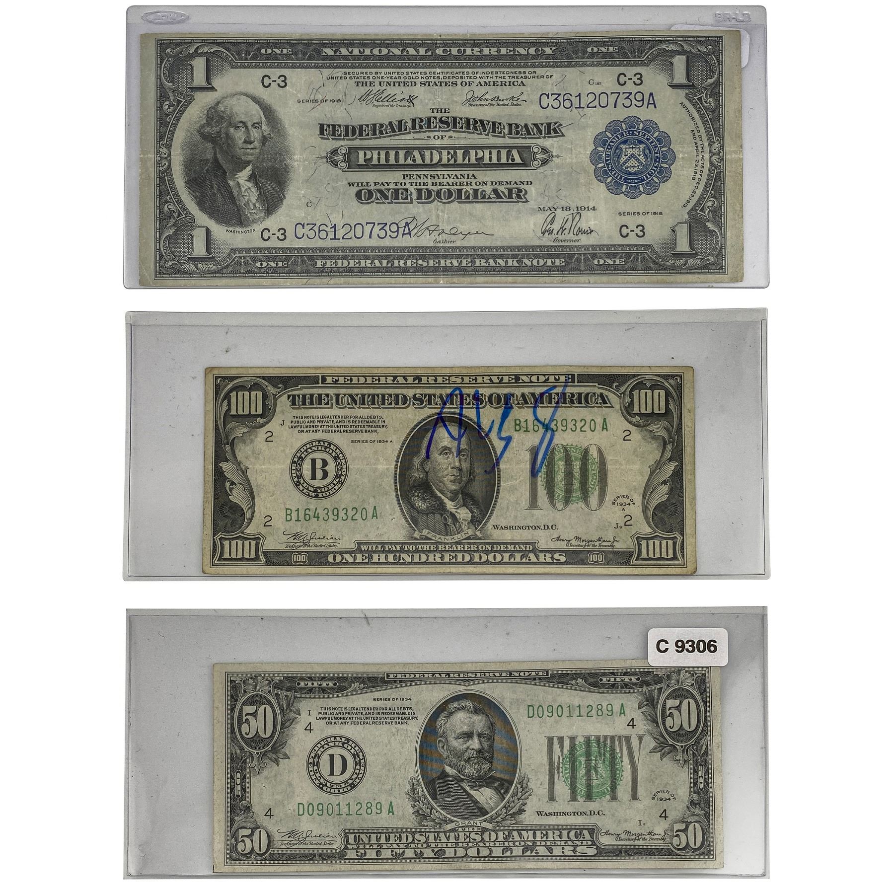 1918-1934 [3] U.S. Paper Money Lot $1-$100