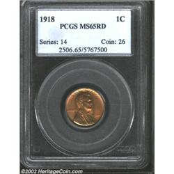 1918 1C MS65 Red PCGS. Fiery luster dances over lush red surfaces. A single mark above the date is v