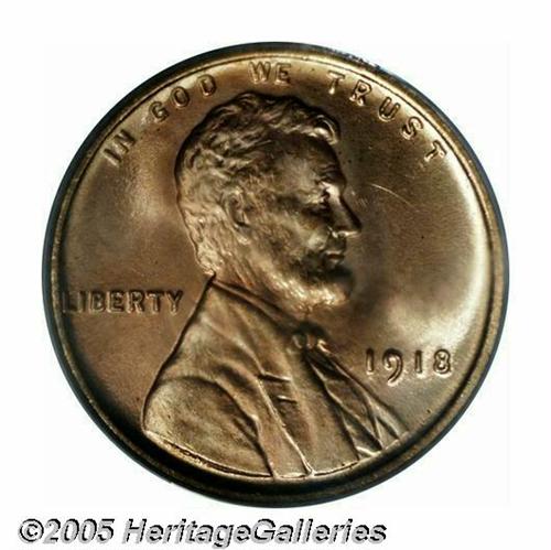 <B>1918<1C> MS66 Red PCGS.</B></I> The purist will consider this to be the first year of issue for a design type, with the addition of VDB to Lincoln's shoulder truncation. These letters are extremely tiny and well-hidden. Each side shows bright, even orange-gold coloration with very little variation in hue. Sharply struck in all areas with exceptional eye appeal, one tiny fleck is noted in the reverse center, and very few abrasions are present from coin-to-coin contact. Population: 52 in 66, 9 finer (3/05).