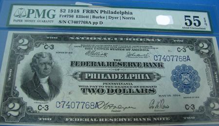 1918 $2.00 Federal Reserve Bank Note FR# 756 PMB Almost Uncirculated 55 EPQ