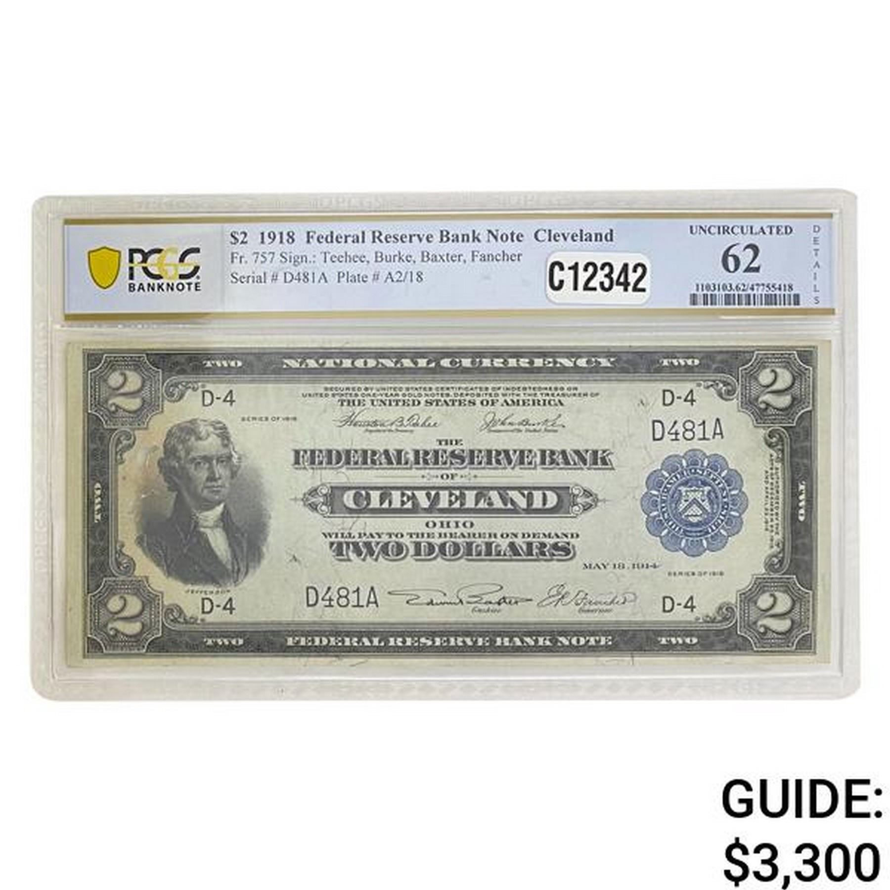 1918 $2 "BATTLESHIP" FRBN PCGS UNCIRCULATED-62