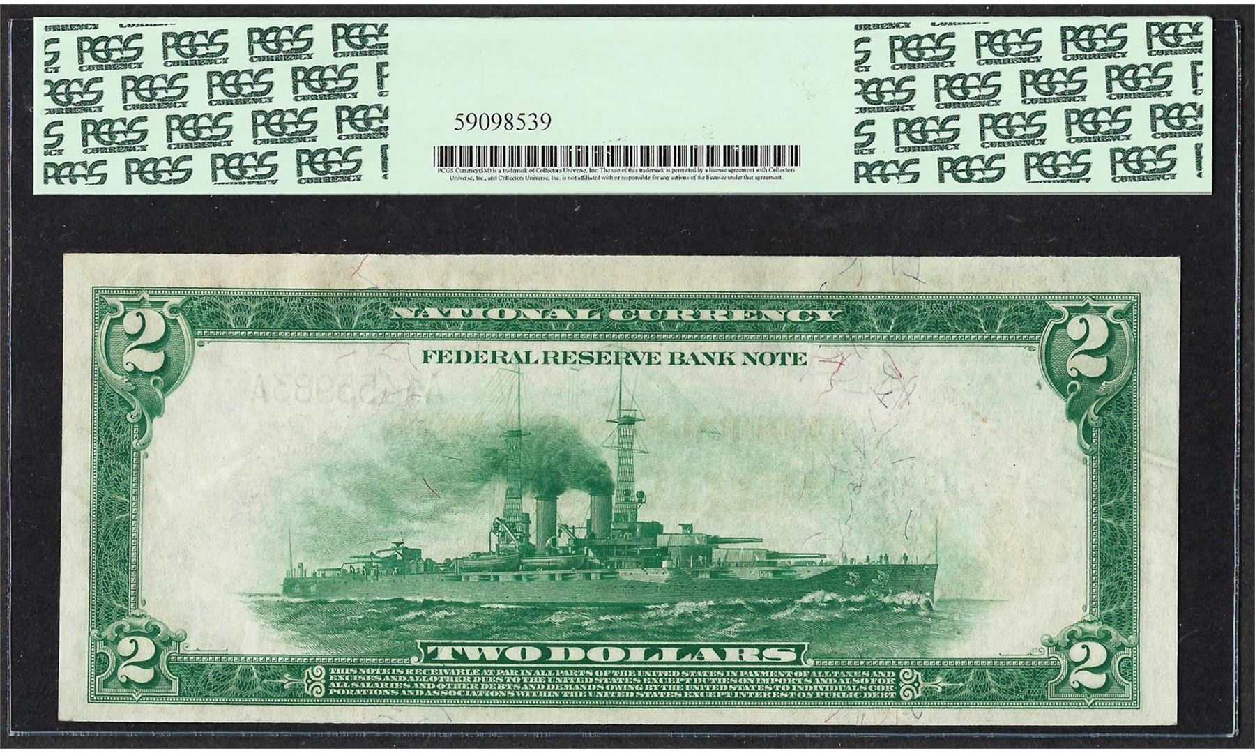 One 1918 $2 Battleship Federal Reserve Bank Note Boston Fr.747 PCGS Choice New 63. PCGS Graded.
