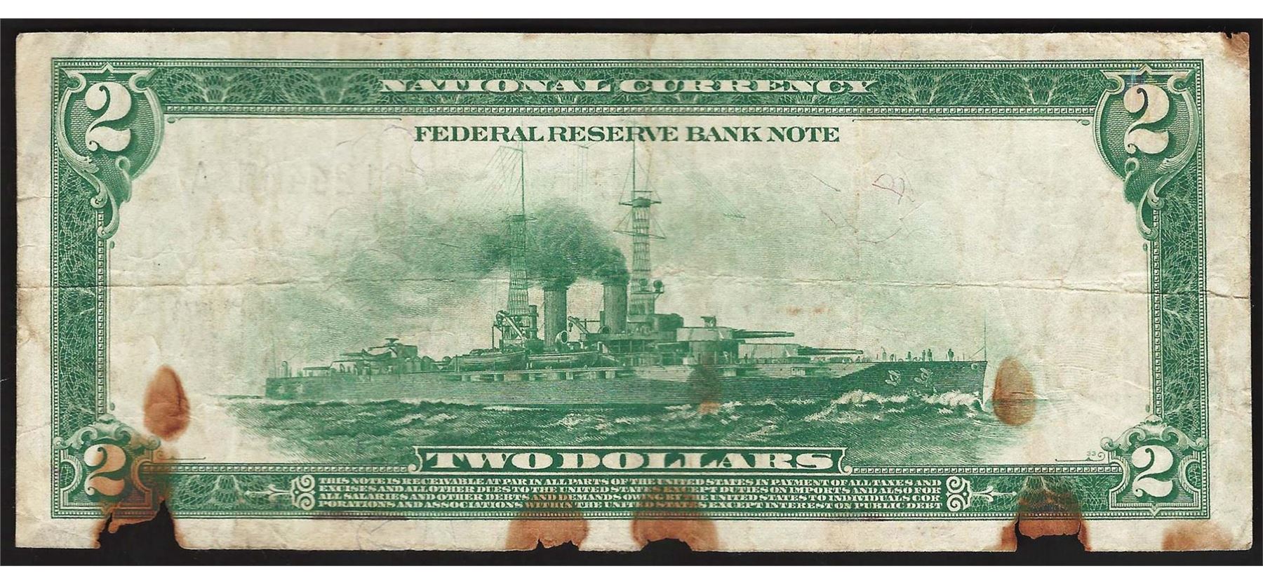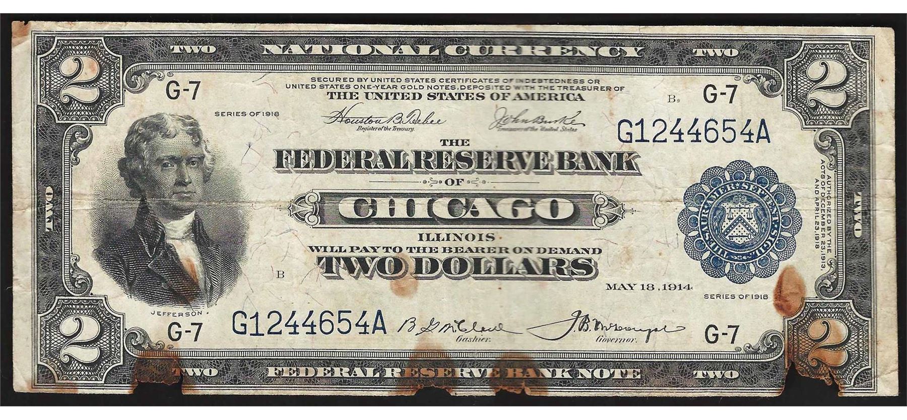 One 1918 $2 Battleship Federal Reserve Bank Note Chicago.