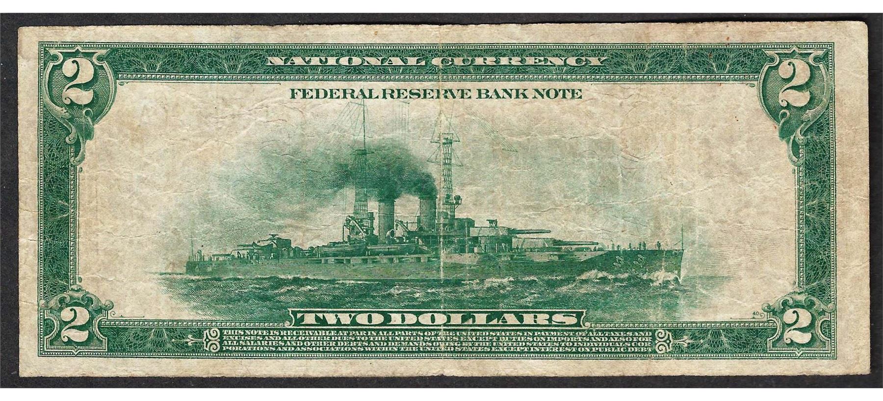 One 1918 $2 Battleship Federal Reserve Bank Note Cleveland.