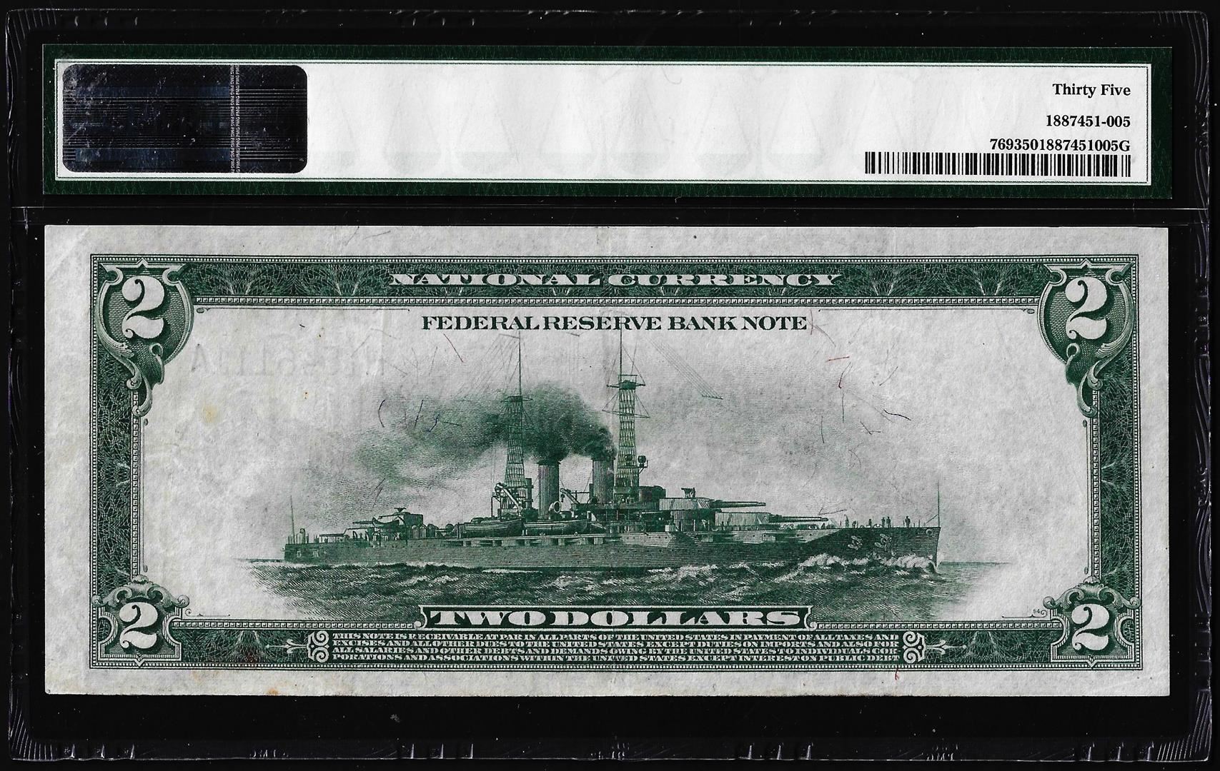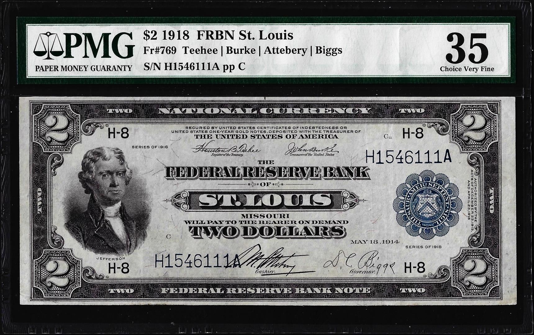 One 1918 $2 Battleship Federal Reserve Bank Note St. Louis Fr.769 PMG Choice Very Fine 35. PMG Certified.