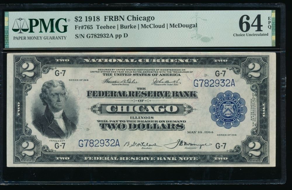 One 1918 $2 Chicago FRBN PMG 64EPQ.