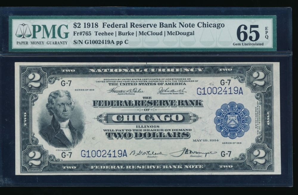 One 1918 $2 Chicago FRBN PMG 65EPQ.