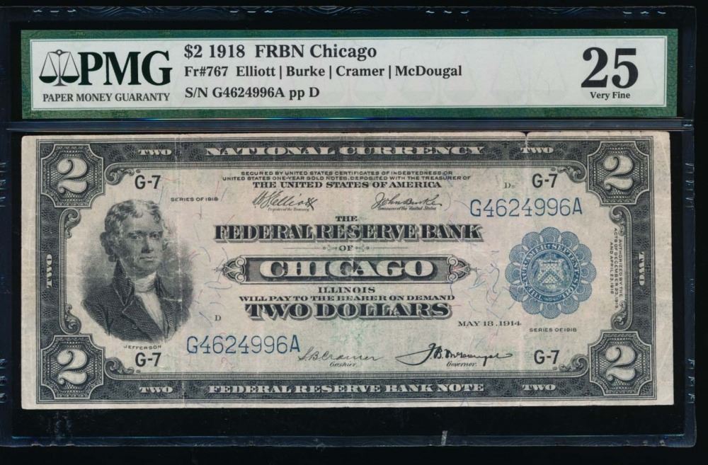 One 1918 $2 Chicago Federal Reserve Bank Note PMG 25.