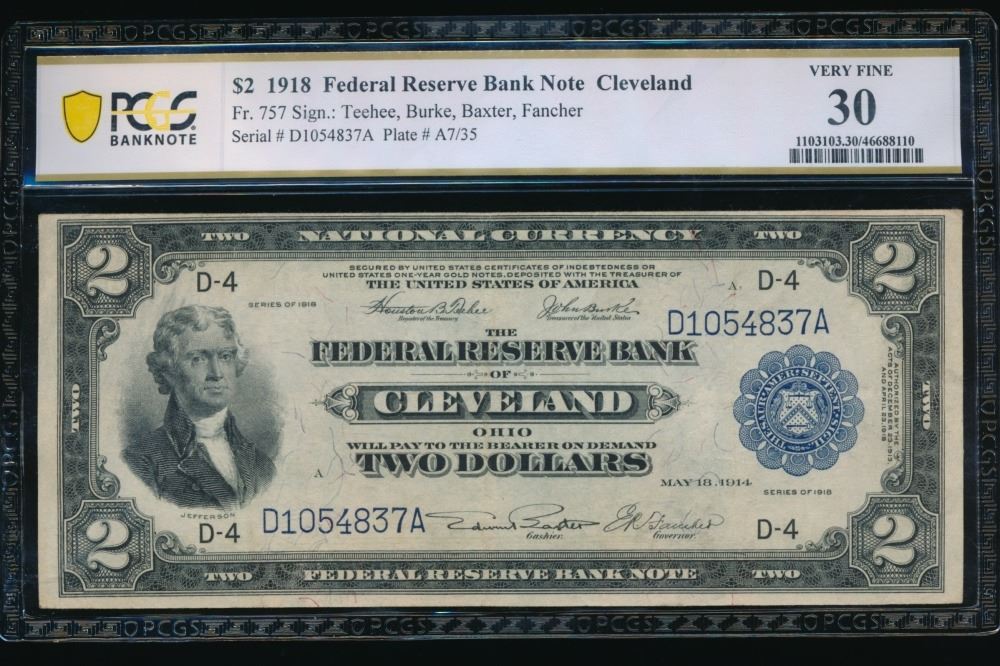 One 1918 $2 Cleveland FRBN PCGS 30.