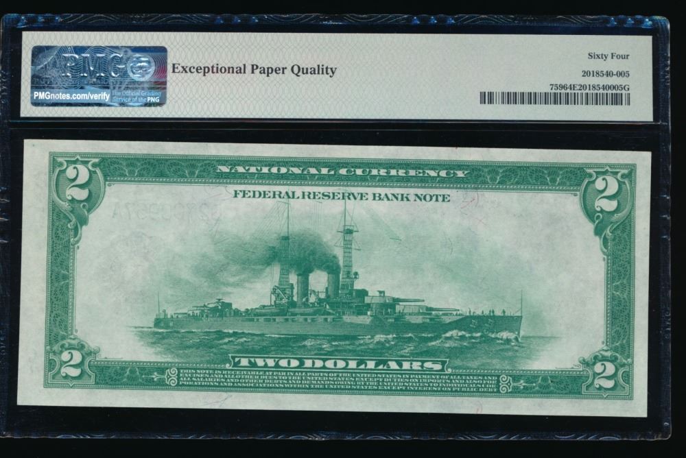 One 1918 $2 Cleveland FRBN PMG 64EPQ.