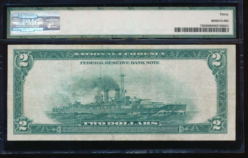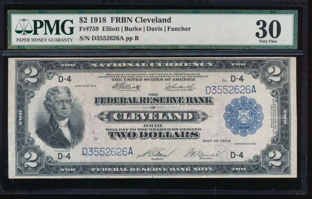 One 1918 $2 Cleveland Federal Reserve Bank Note PMG 30.