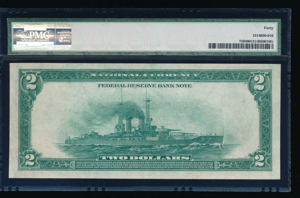 One 1918 $2 Cleveland Federal Reserve Bank Note PMG 40.