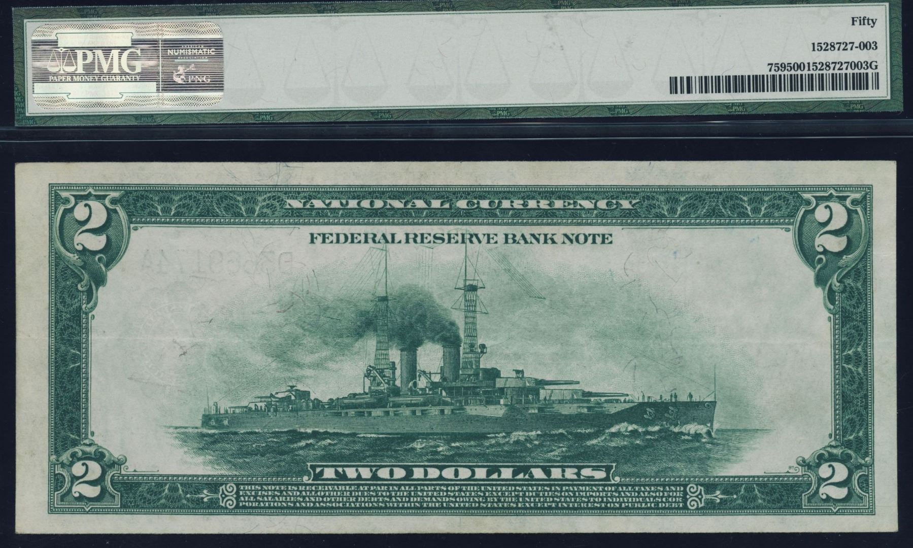 One 1918 $2 Cleveland Federal Reserve Bank Note PMG 50.