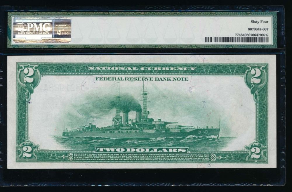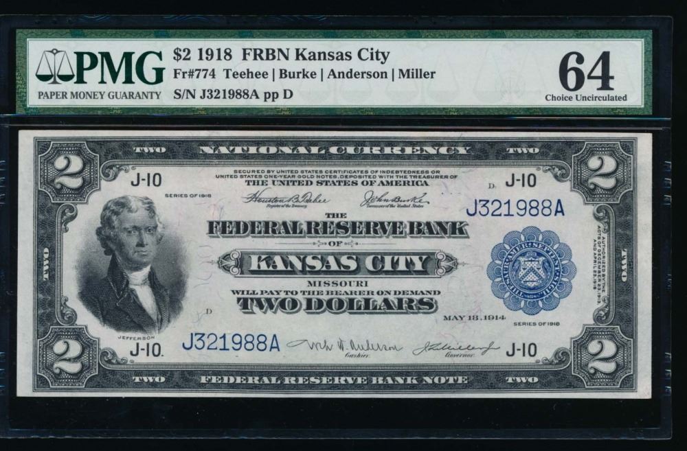 One 1918 $2 Kansas City Federal Reserve Bank Note PMG 64.