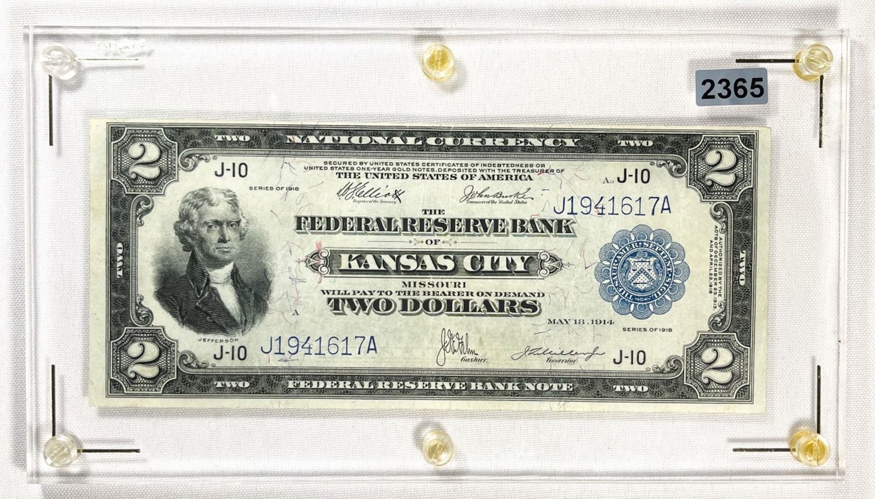 1918 $2 Kansas City MO Nat. Bank Note CLOSE UNC