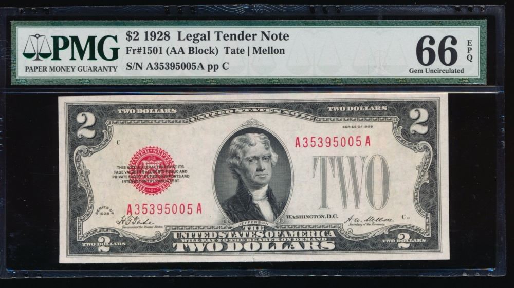 One 1918 $2 Legal Tender Note PMG 66EPQ.