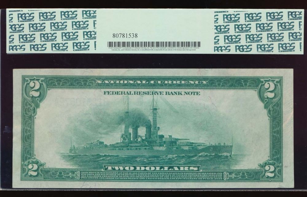 One 1918 $2 New York Federal Reserve Bank Note PCGS 63.