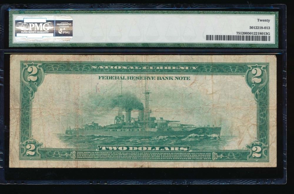 One 1918 $2 New York Federal Reserve Bank Note PMG 20.