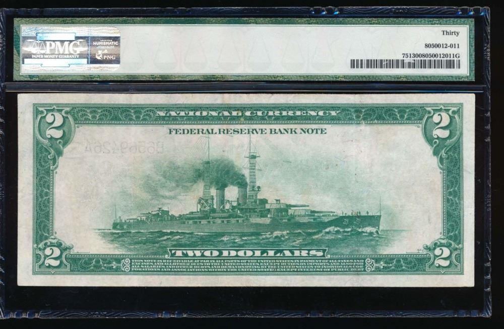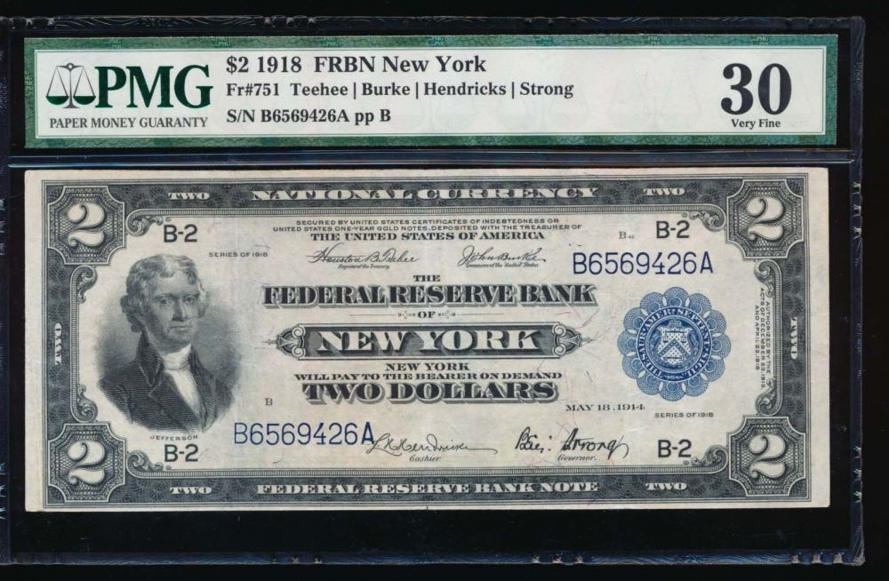 One 1918 $2 New York Federal Reserve Bank Note PMG 30.