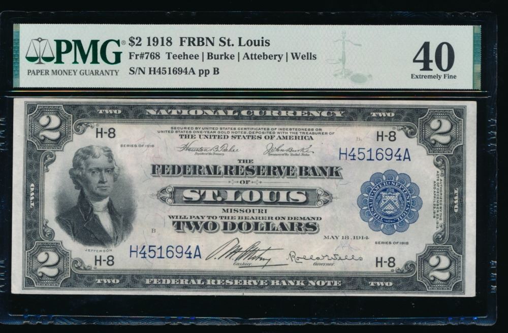 One 1918 $2 St Louis FRBN PMG 40.