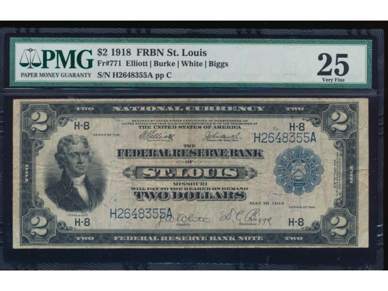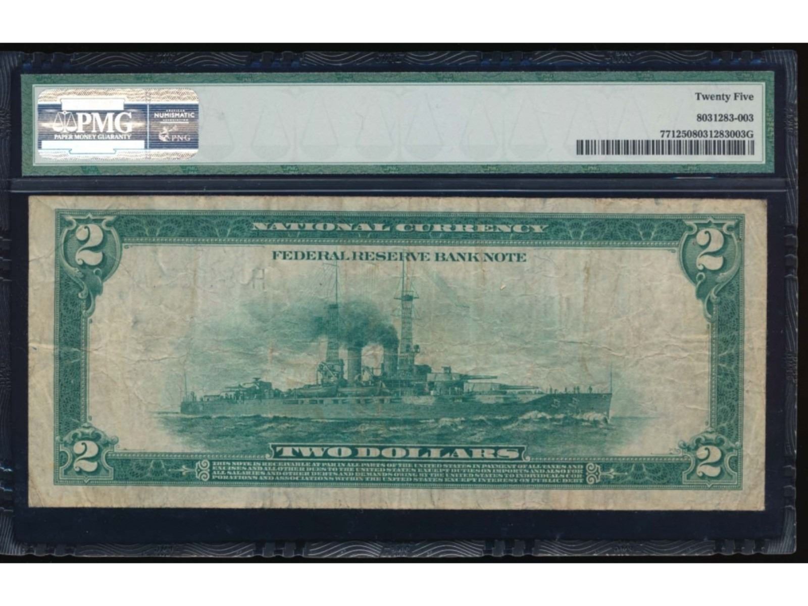 One 1918 $2 St Louis Federal Reserve Bank Note PMG 25.